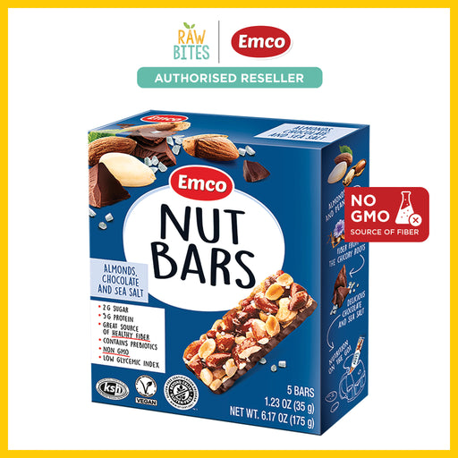 Emco Almonds, Chocolate and Sea Salt Nut Bars [5 x 35g] (Contains Prebiotics, Source of Fiber, No GMO)
