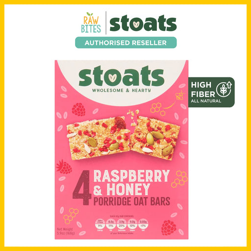 Stoats Raspberry & Honey Porridge Oat Bars [4 bars x 42g] [4 bars x 42g] (All Natural, High Fiber, Palm Oil Free)