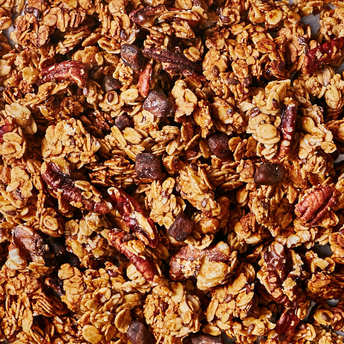 This cinnamon-dusted earthy granola is made with traditional rolled oats and golden flax seeds coated in natural banana puree. Topped with pecans, walnuts, and sweet banana bits.