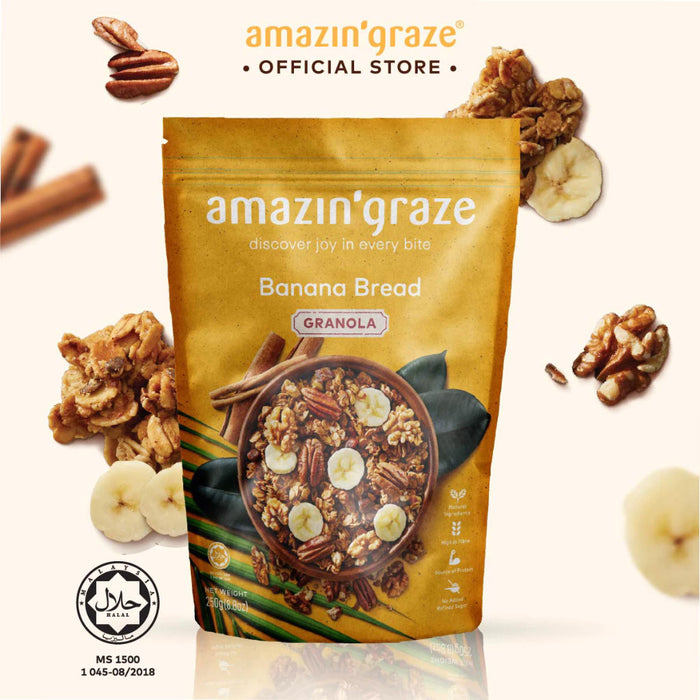 Amazin' Graze Banana Bread Granola 250g (No Refined Sugar, Source of Protein)
