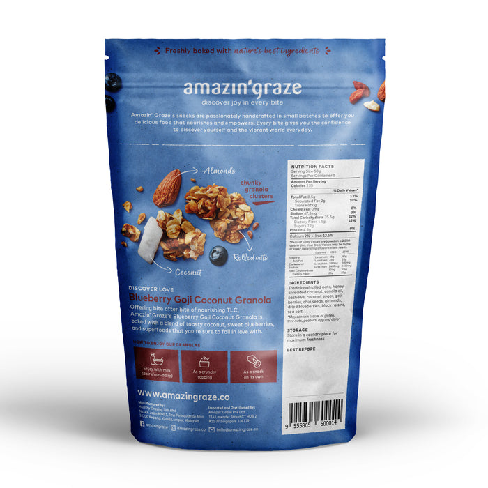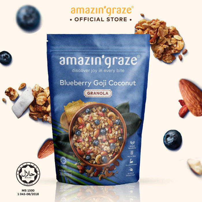 Amazin' Graze Blueberry Goji Coconut Granola 250g (No Refined Sugar, Source of Protein)