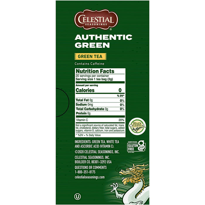 Celestial Seasonings Authentic Green Tea 41g/20 bags (Caffeinated, High in Antioxidants, Sugar Free)
