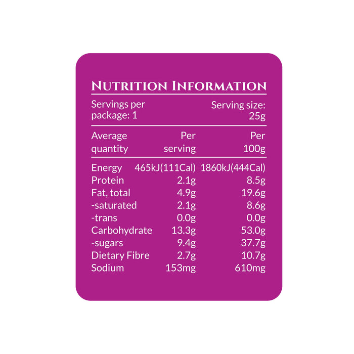 Broccoli (75%), Vegetable Oils, Maltose, Seasoning (Natural Flavour, Salt, Maltodextrin, Sugar, Vegetable Powders (Garlic, Onion), Sunflower Oil)