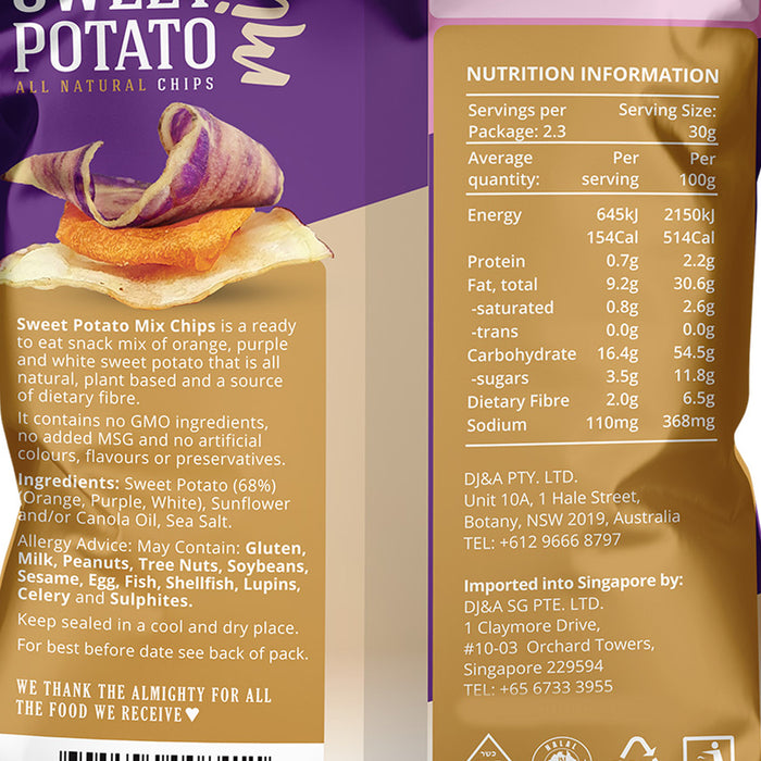 Sweet Potato (68%) (Orange, Purple, White), Sunflower And/Or Canola Oil, Sea Salt