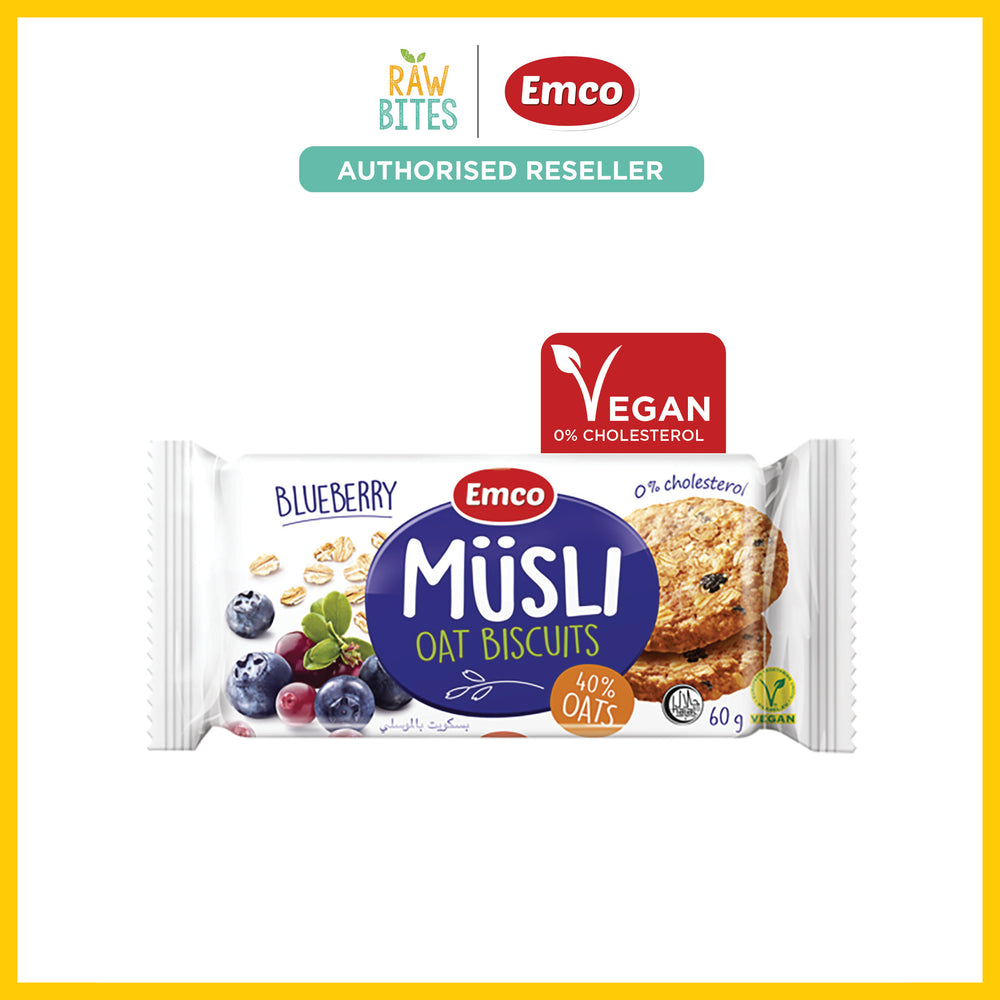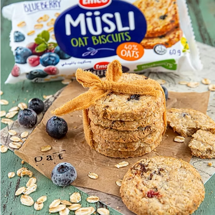 Emco Blueberry Müsli Oat Biscuit 60g (0% Cholesterol, Halal, Vegan)