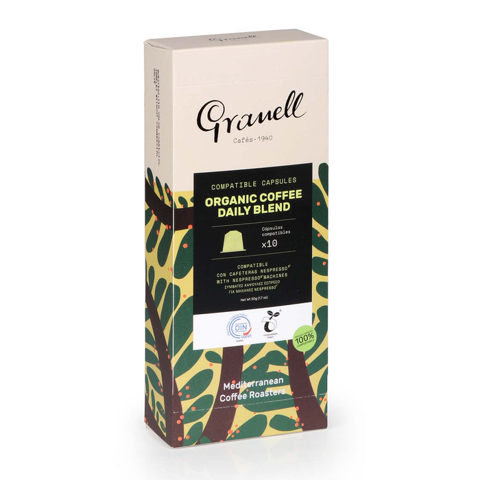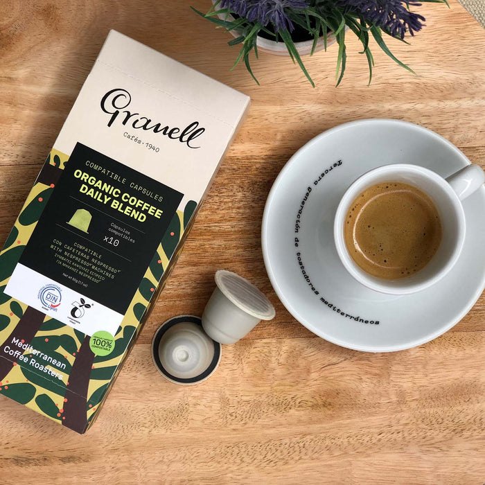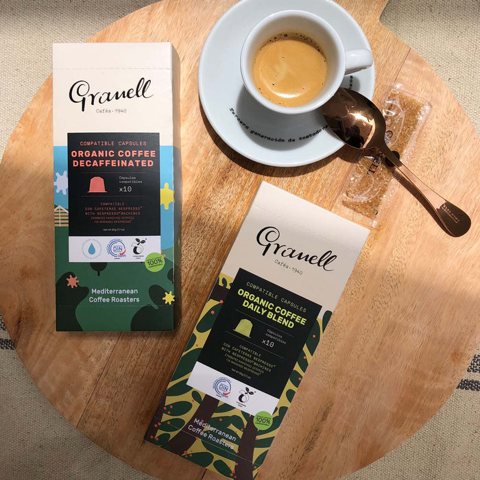 The range of organic Granell coffees with ecological certification guarantees that the coffee has been cultivated using methods that respect the environment and produced under organic production standards to guarantee the final consumer the optimum quality. This product is fully biodegradable, converting into water, biomass and CO2 in approximately 18 weeks.