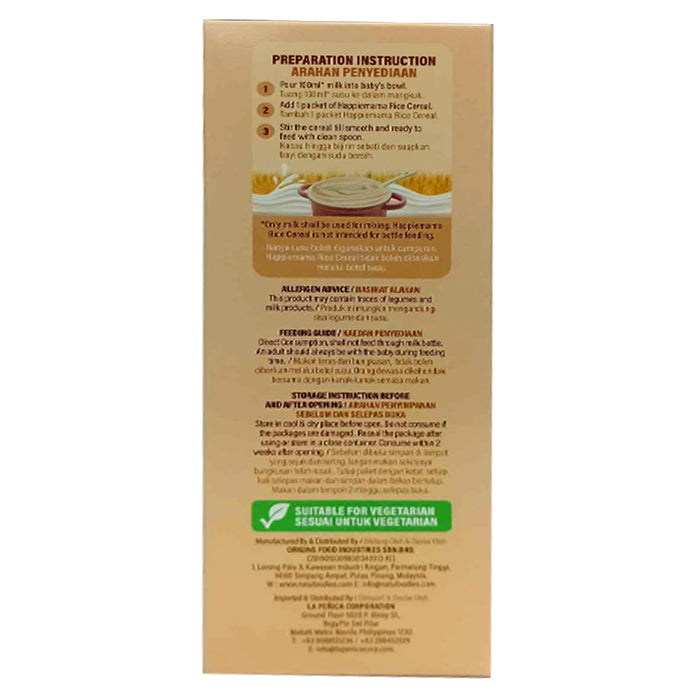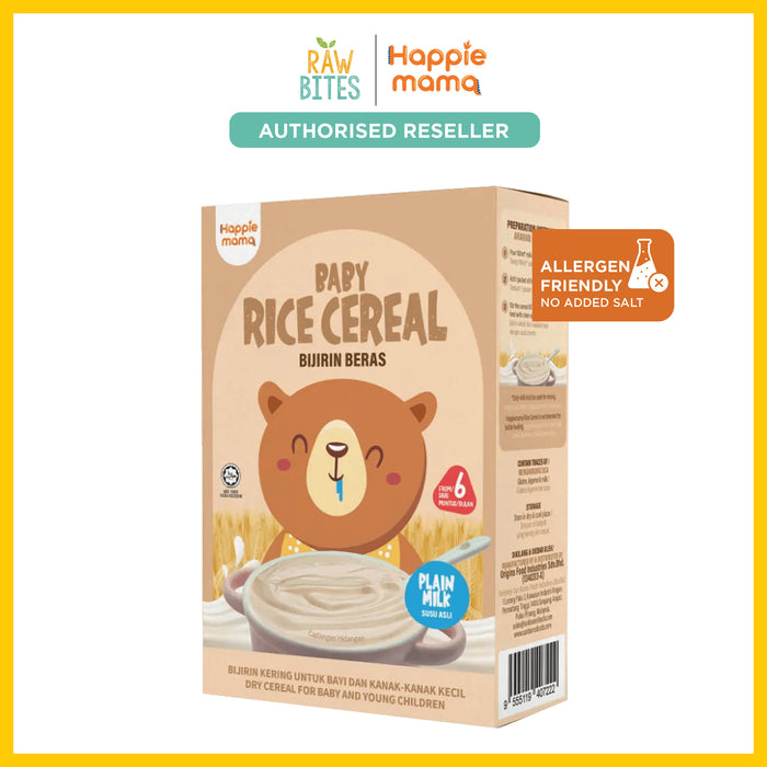 Happiemama Baby Food Plain Milk Rice Cereal [5 packs x 15g] [6mos+] (Allergen Friendly, No Added Salt)