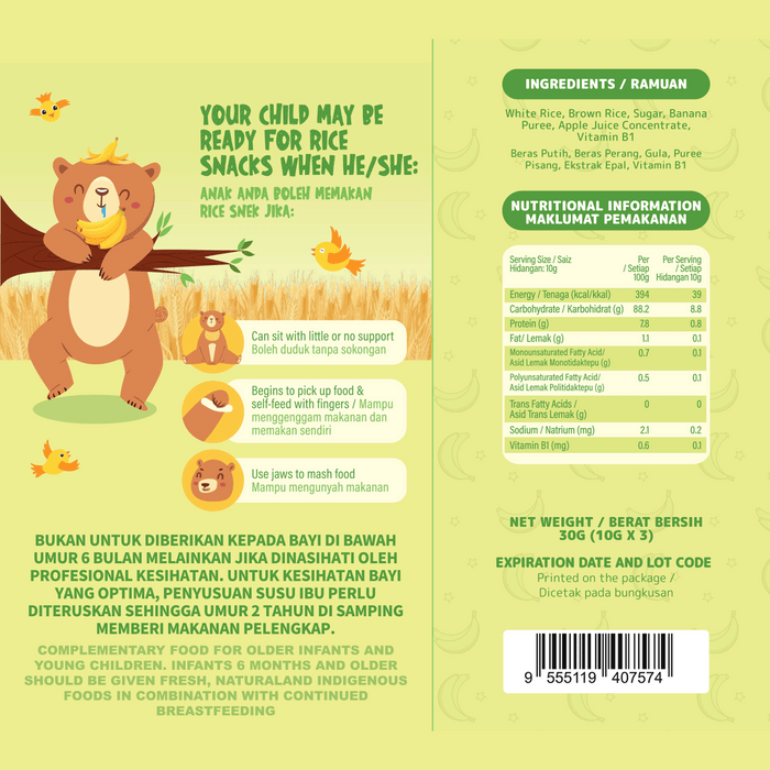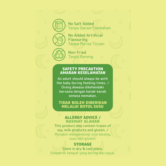 Banana Flavor: Enjoy the natural sweetness of ripe bananas in every bite, packed with essential nutrients to support your baby’s growth.