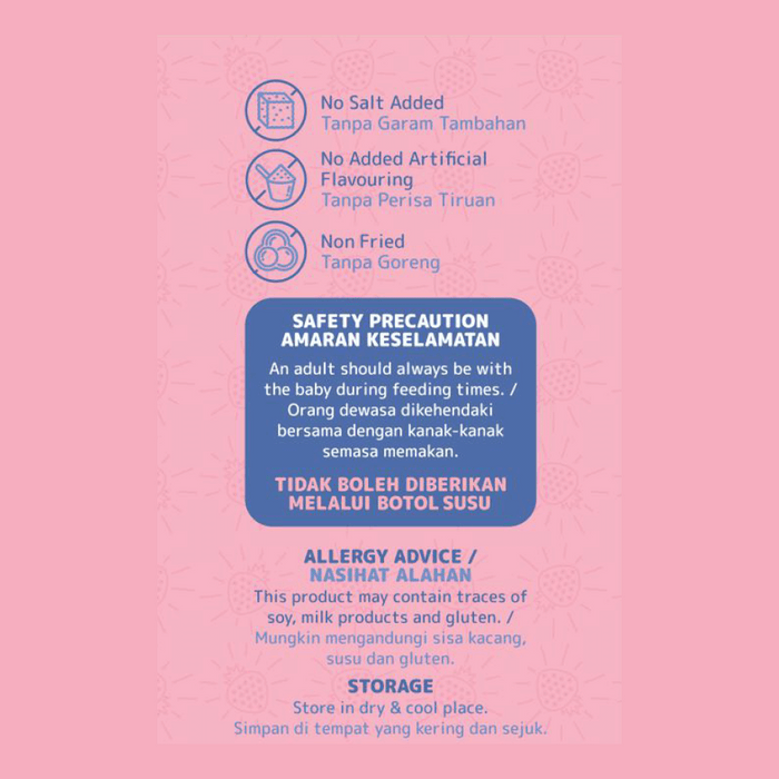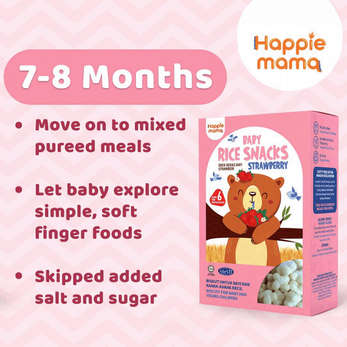 Discover Happiemama Rice Snacks, the perfect wholesome treat for your little one, available in two delicious flavors: Banana and Strawberry! Made with natural ingredients and no added sugar, these rice snacks are designed to provide a nutritious and tasty option for your baby’s snacking needs.