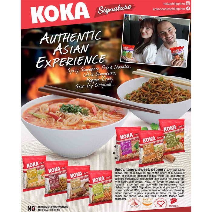 Spicy, tangy, sweet, peppery. Any true Asian knows that bold flavours are at the heart of a delicious bowl of steaming instant noodles. KOKA Signature is the perfect union of Singapore's favourite herbs and spices with her best-loved local dishes.
