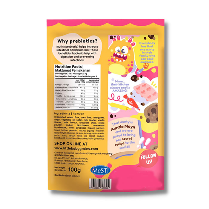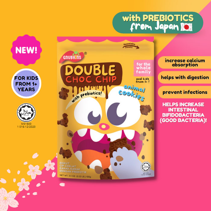 Everyone loves chocolate cookies and it's even better with chocolate chips! These Double Choc Chip Cookies are enhanced with prebiotics! The best snack for kids and the whole family. Suitable for kids from 1+ years old.
