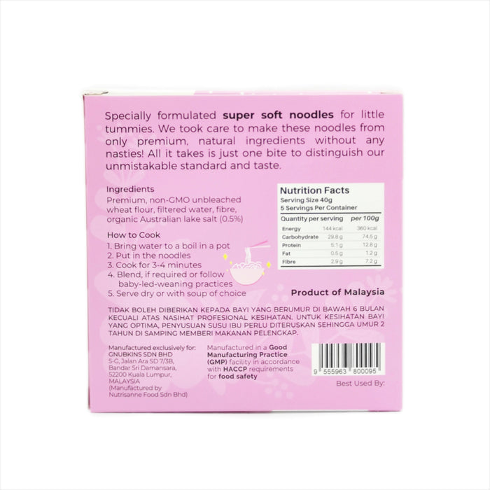 We took care to make these noodles from only premium, all-natural ingredients, without any nasties like preservatives, artificial flavours or colours. Noodle length has been customised for little fingers. Easy to cook, cooking on a stovetop takes about 3-4 minutes.