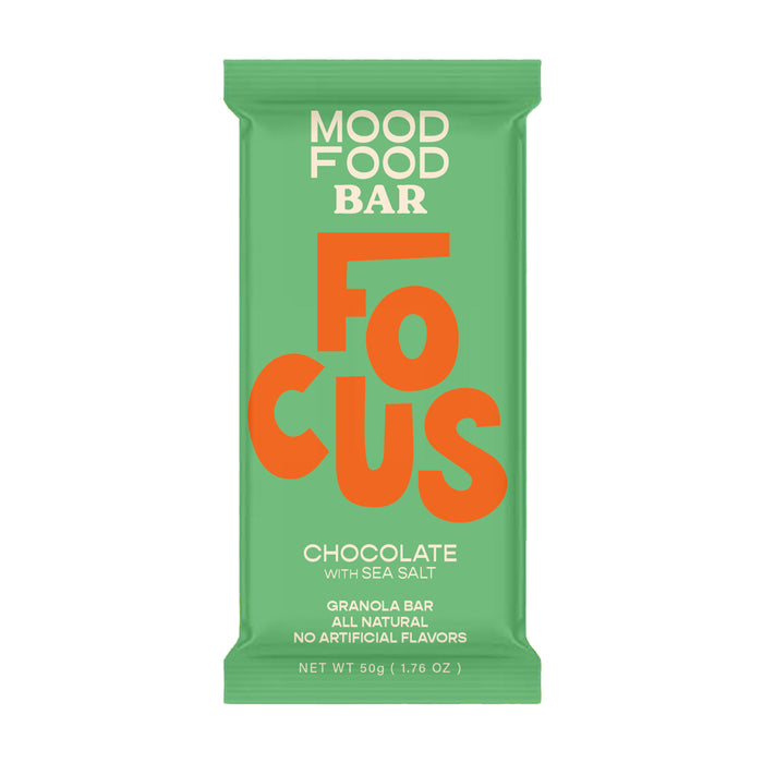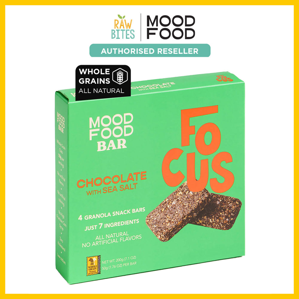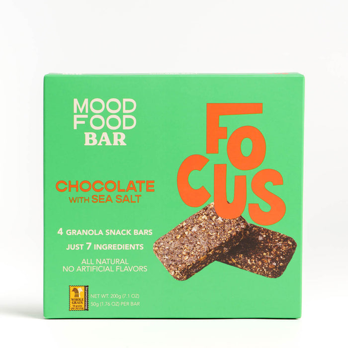 Mood Food Bar Focus - Chocolate with Sea Salt [4 x 50g] (All Natural, No Refined Sugar, Whole Grains)