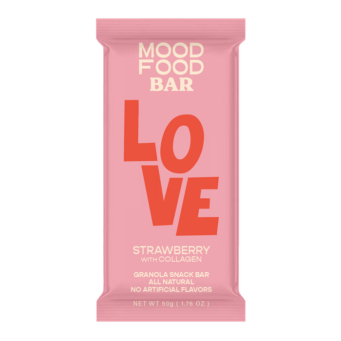 Mood Food Bar Love - Strawberry with Collagen [4 x 50g] (All Natural, No Refined Sugar, Whole Grains)
