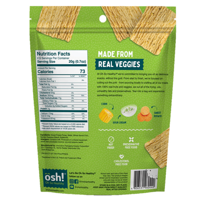 At Oh So Healthy! they are committed to bringing you oh so delicious snacks, without the guilt. From start to finish, they are focused on cutting out the junk - from souring locally to crafting all of their treats with 100% real fruits and veggies. They cut all the frying, oils, unhealthy fats and preservatives. Tear into a bag and experience something extraordinary.