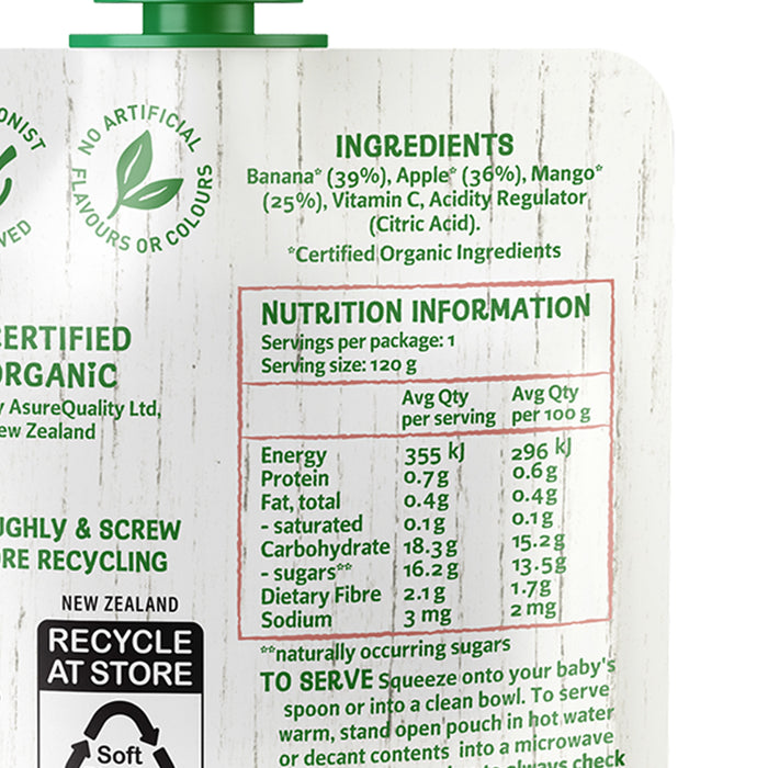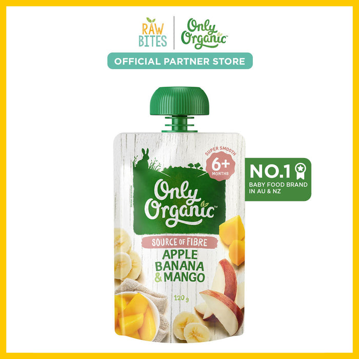 Only Organic Baby Food Apple, Banana & Mango 120g [6 mos+] (Organic, Nutritionist Approved, Source of Fiber)