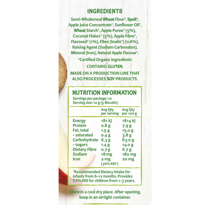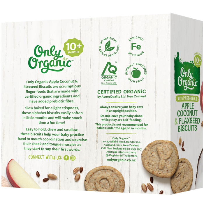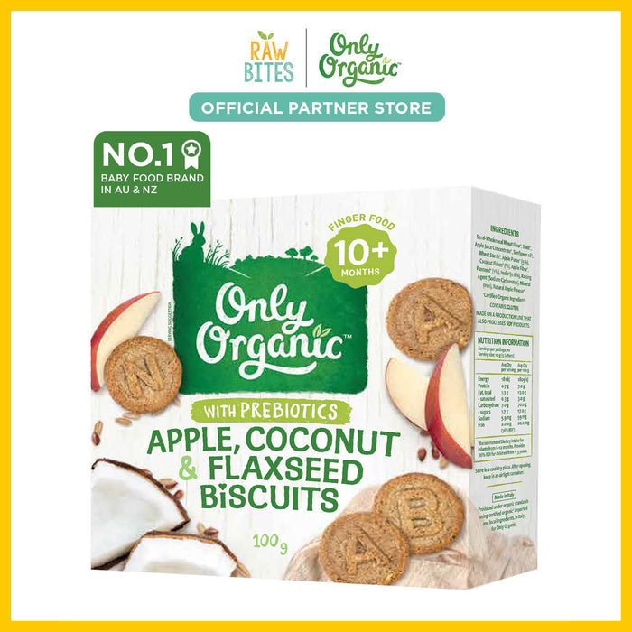 Only Organic Baby Snack Apple Coconut & Flaxseed Biscuits 100g [10 mos+] (Iron Enriched, Organic, with Prebiotics)