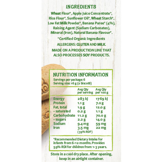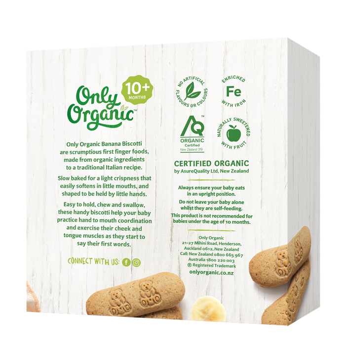 Only Organic Baby Snack Banana Biscotti 100g [10 mos+] (Iron Enriched, Organic, Nutritionist Approved)