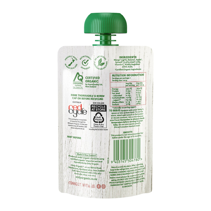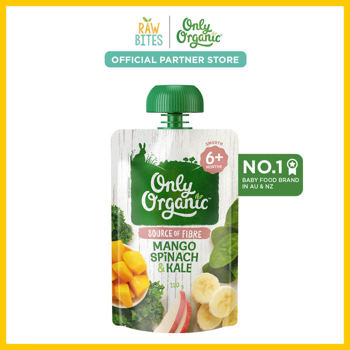 Only Organic Baby Food Mango, Spinach & Kale 120g [6 mos+] (Organic, Nutritionist Approved, Source of Fiber)