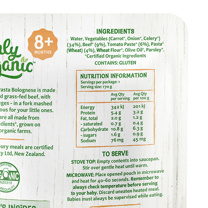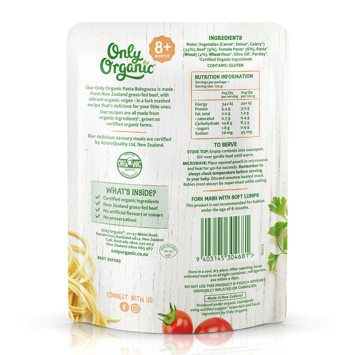 Only Organic Baby Food Pasta Bolognese 170g [8 mos+] (Organic, Nutritionist Approved)