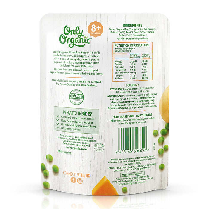 Only Organic Baby Food Pumpkin, Potato & Beef 170g [8 mos+] (Organic, Nutritionist Approved)