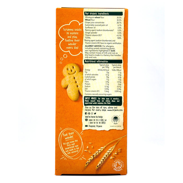 Our organic gingerbread biscuits for toddlers contain absolutely nothing artificial. Made using the best organic ingredients, such as wholegrain wheat flour, grape juice and ginger, they are great for growing toddlers to snack, play and explore.