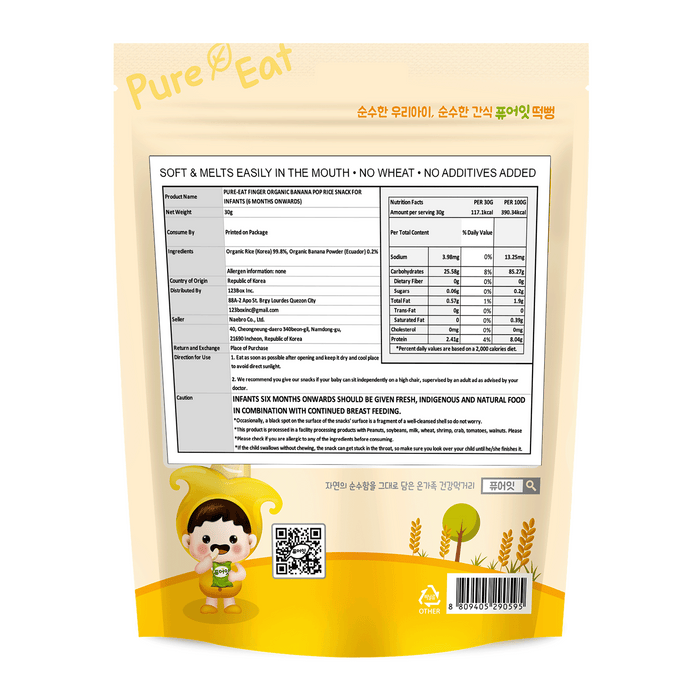 Pure-Eat Baby Food Organic Banana Pop Rice Snack 30g [6mos+] (Gluten Free, Vegan, No Added Sugar & Salt)