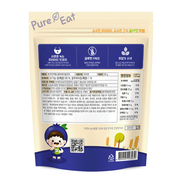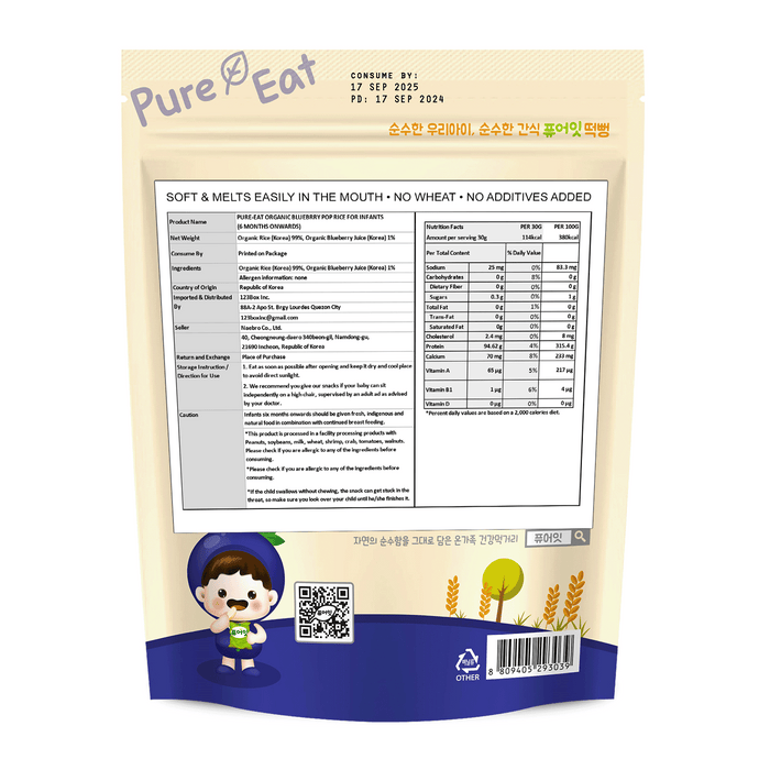 Pure-Eat Baby Food Organic Blueberry Pop Rice Snack 30g [6mos+] (Gluten Free, Vegan, No Added Sugar & Salt)
