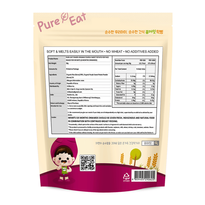 Pure-Eat Baby Food Organic Purple Sweet Potato Pop Rice Snack 30g [6mos+] (Gluten Free, Vegan, No Added Sugar & Salt)