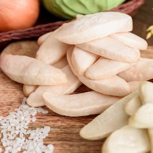 - Rice cake made with organic white rice and vegetable powder or fruit juice fried by high heat and high pressure.