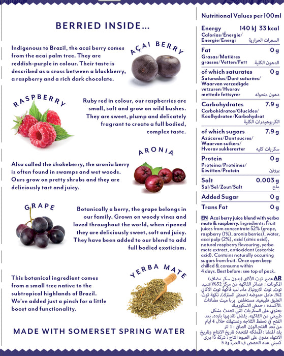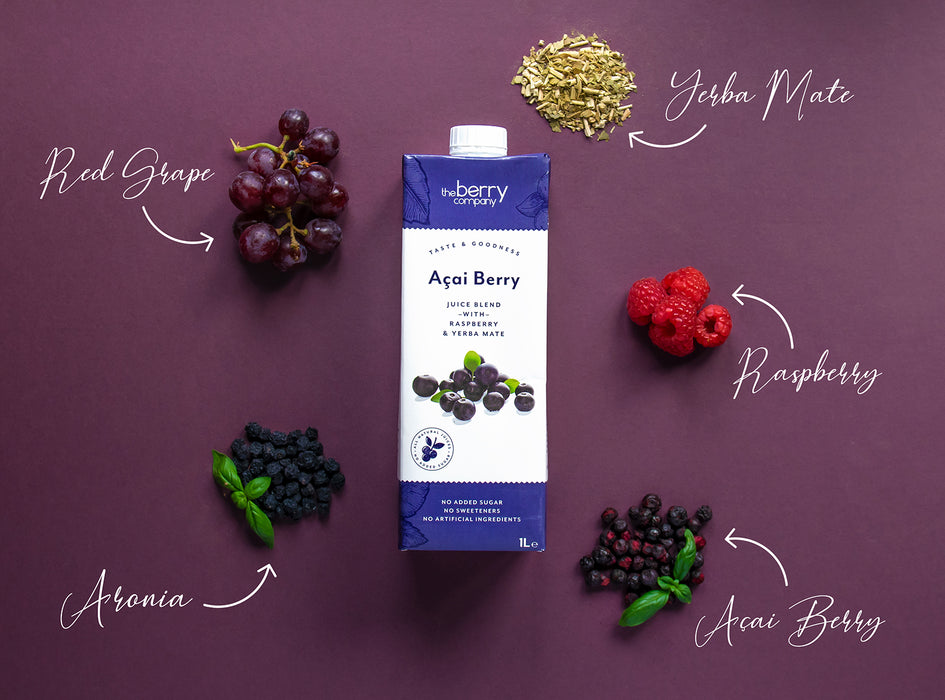 The Berry Company No Sugar Added Acai Berry Juice 1L (No Sugar Added, Gluten Free, Vegan)