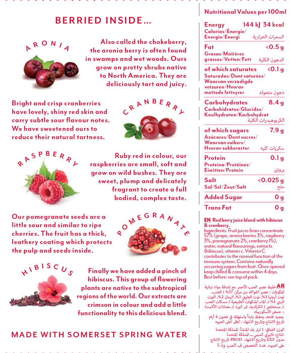 The Berry Company No Sugar Added Superberries Red Juice 1L (No Sugar Added, Gluten Free, Vegan)
