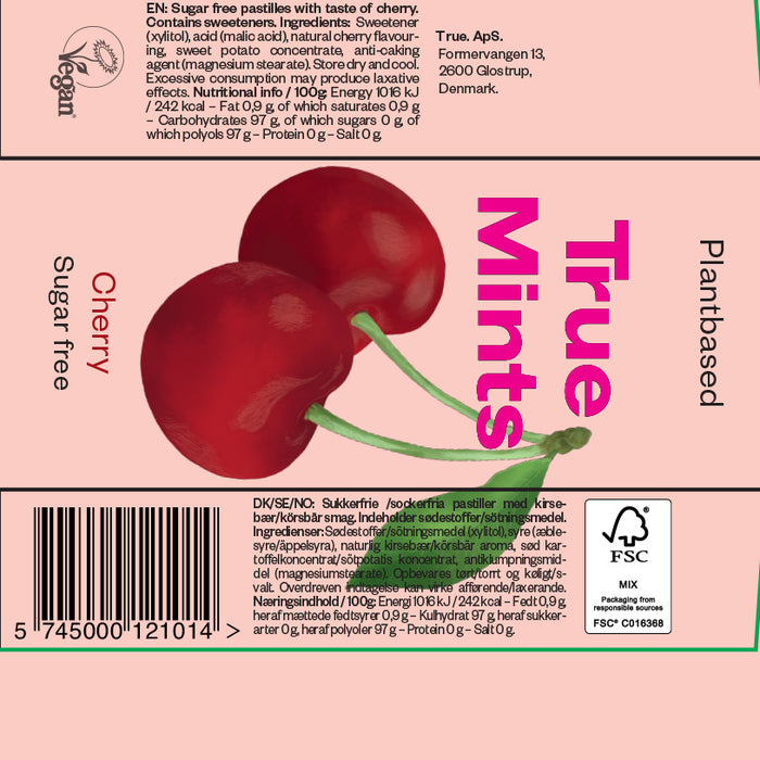 Sweeteners (Xylitol), acid (apple cider), natural cherry flavoring, sweet potato concentrate, anti-caking agent (magnesium stearate)